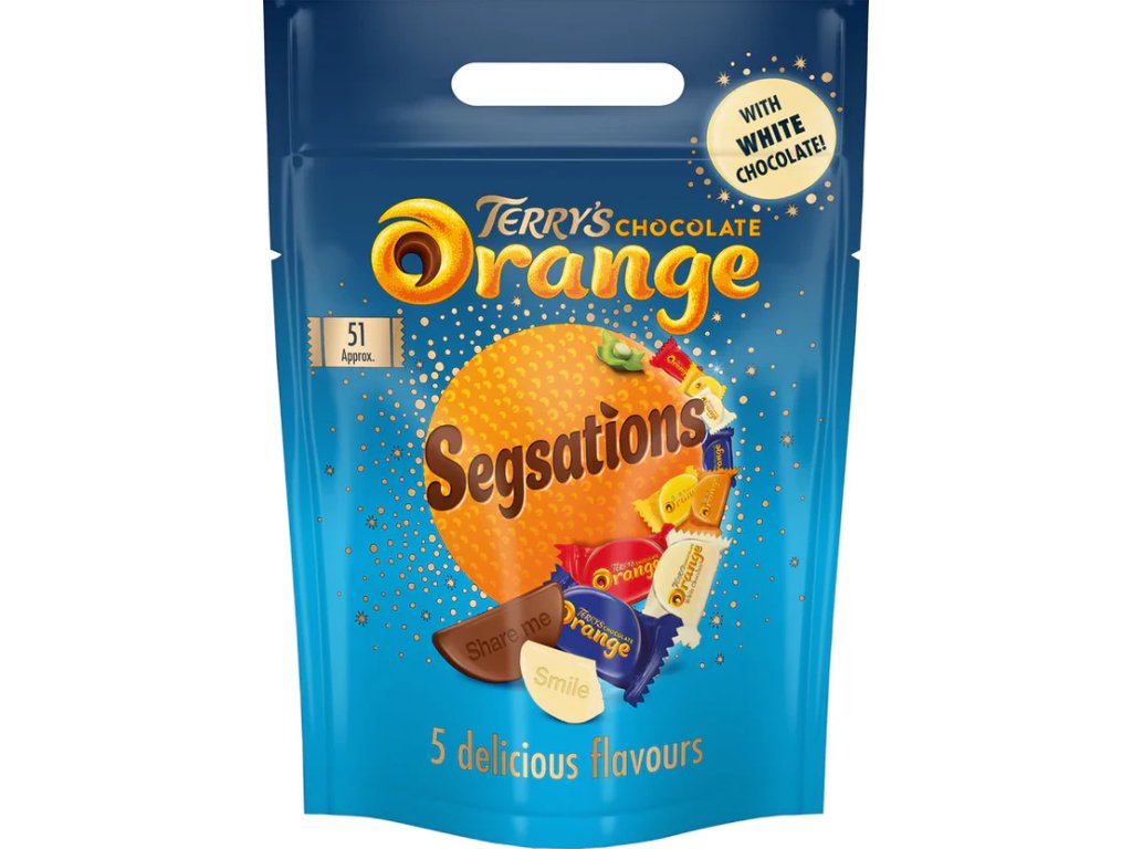 Terry’s Chocolate Orange Segsations – mléčná a hořká čokoláda s pomerančovým olejem, směs čtyř příchutí