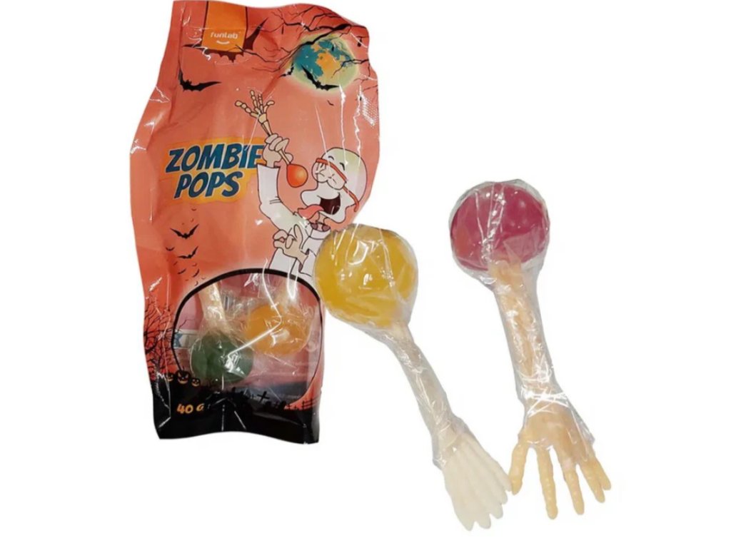 Děsivé kostěné ruce s lahodným ovocným lízátkem na konci. Ideální halloweenský trik, který by neměl chybět na žádném halloween párty! Ideální také jako dekorace! Lízátka na kostěné ruce jsou bezlepková, bez laktózy a bez sóji a AZO barviv!