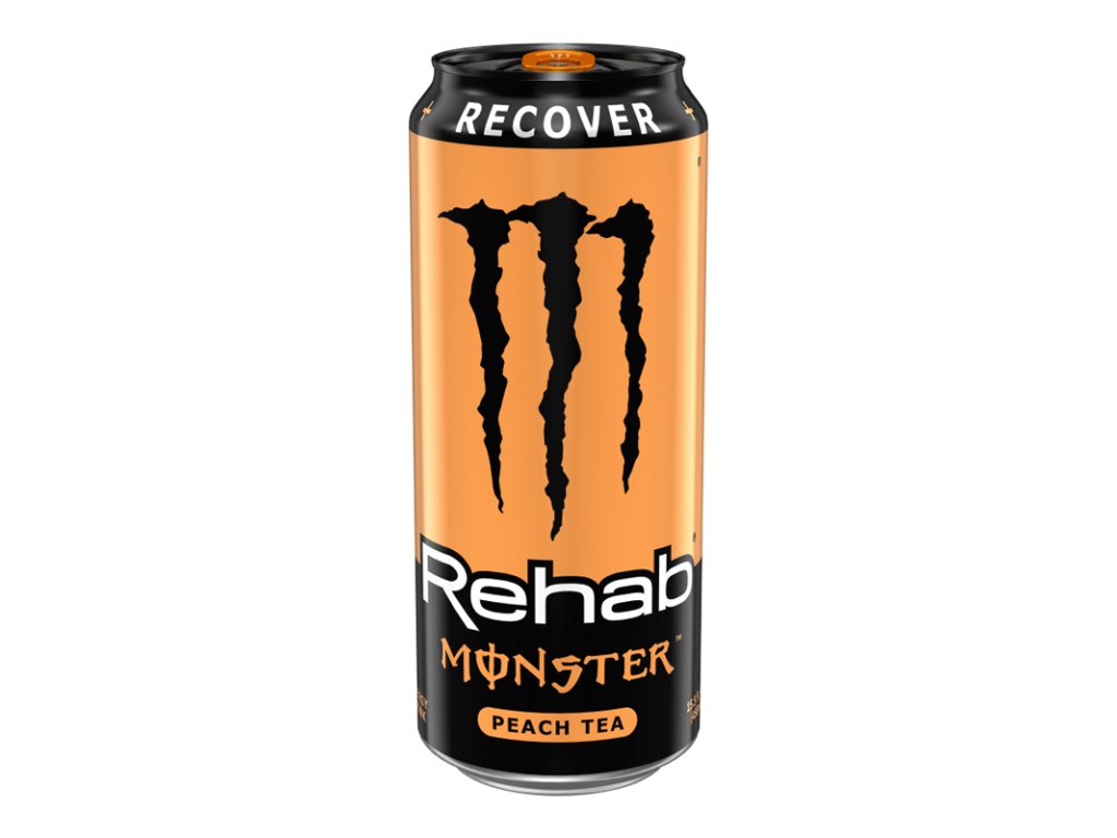 Monster Energetický šumivý nápoj Rehab s příchutí broskve.