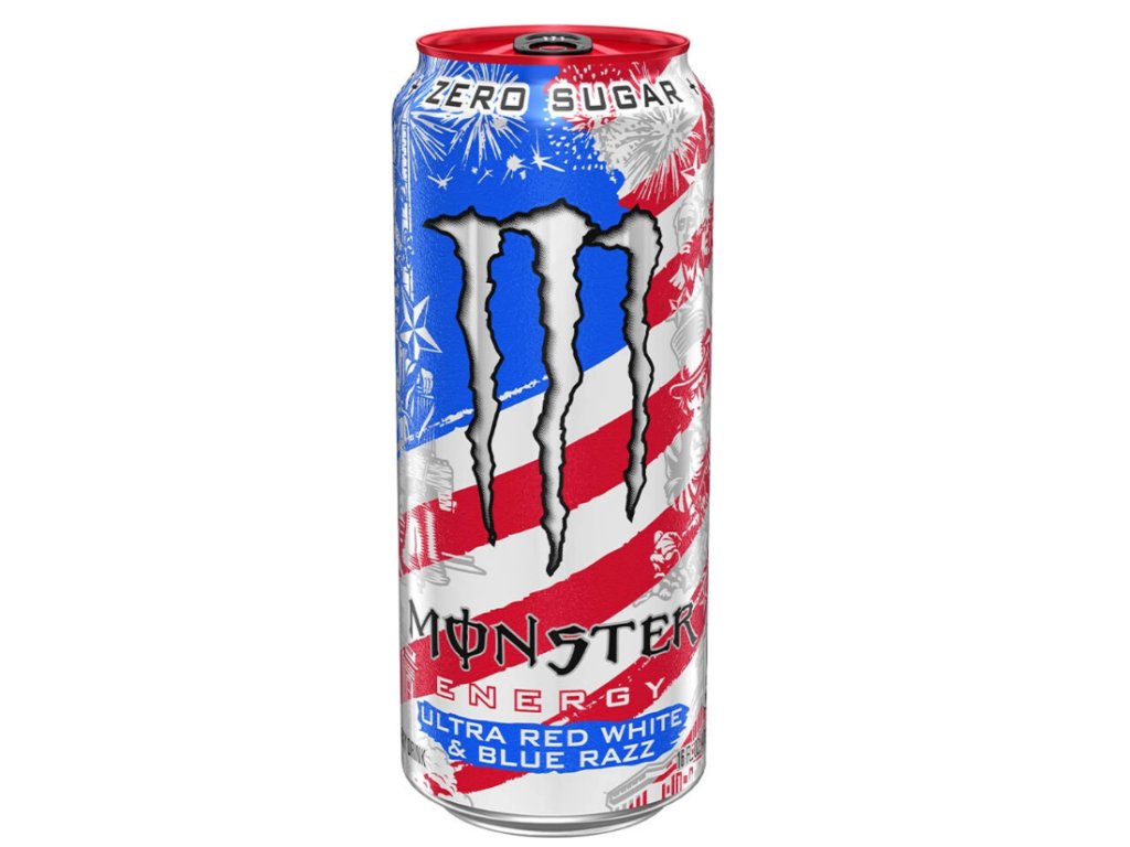 de o jednu ze dvou patriotických plechovek Monsteru vytvořených k oslavám 250. výročí Dne nezávislosti USA (4. července 2026). Design je tedy naprosto nepřehlédnutelný – není náhodou, že úplně první tři příchutě řady Ultra byly laděny do bílé, modré a červené.