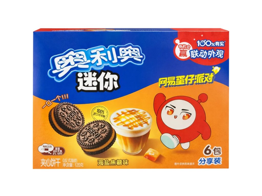 Oreo Mini Sea Salt Caramel kombinuje křupavé čokoládové sušenky se sladkým karamelovým krémem a špetkou mořské soli. Perfektní sladko-slaná svačinka velikosti jednoho sousta.