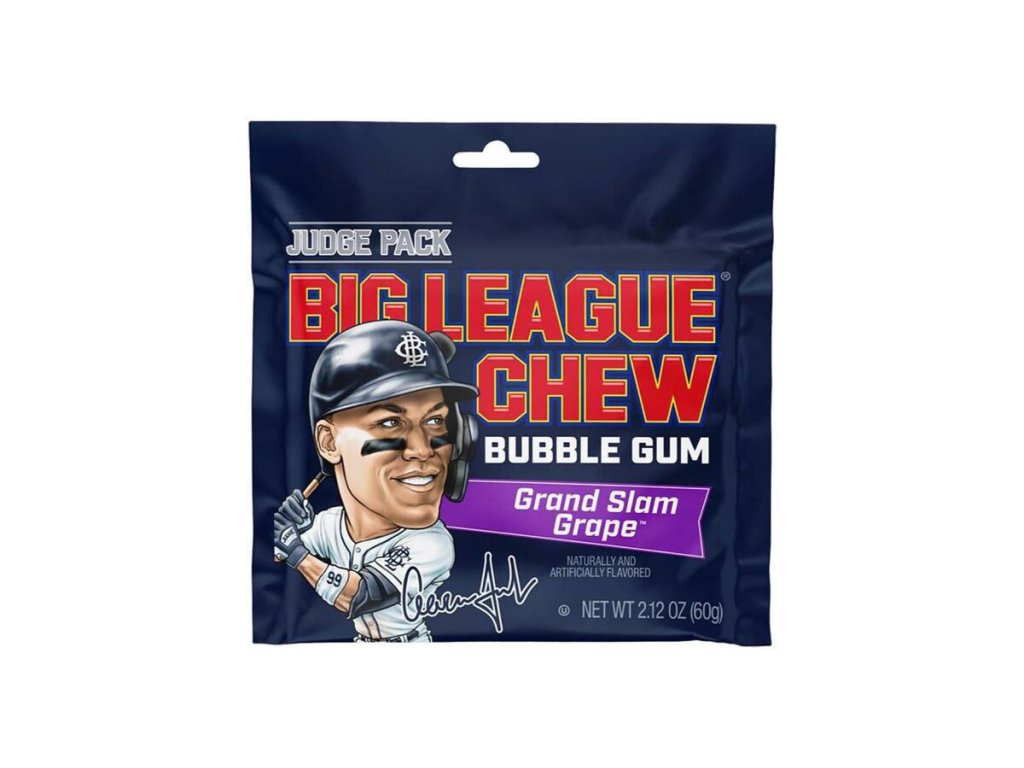 Big League Chew Grape Slam je "hroznový odpal", který tě dostane svou intenzivní chutí a jedinečným formátem. Tato ikonická americká žvýkačka v podobě jemných vláken přináší autentickou chuť sladkých tmavých hroznů, kterou v běžných evropských žvýkačkách nenajdeš. Zavři oči, hoď si do pusy pořádné sousto "strouhané" gumy a užij si obří bubliny jako pravý baseballový šampion.