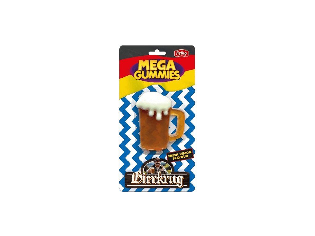 Mega Gummies Bierkrug (Fresh Lemon Flavour) – Želé s příchutí citronu. Želatinová cukrovinka ve tvaru pivního půllitru s citronovou příchutí. Výrobek obsahuje hovězí želatinu a směs barviv.