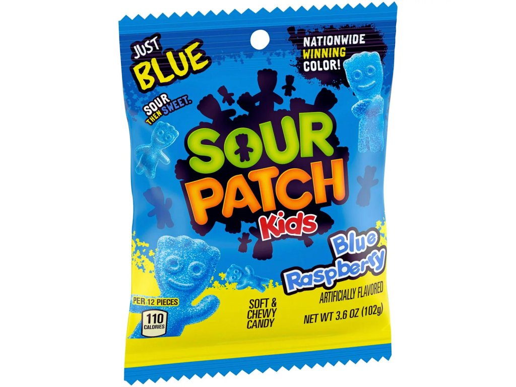 Sour Patch Kids Blue Raspberry – ovocné želé bonbónky s příchutí modré maliny (blue raspberry), se sladko‑kyselým povrchem