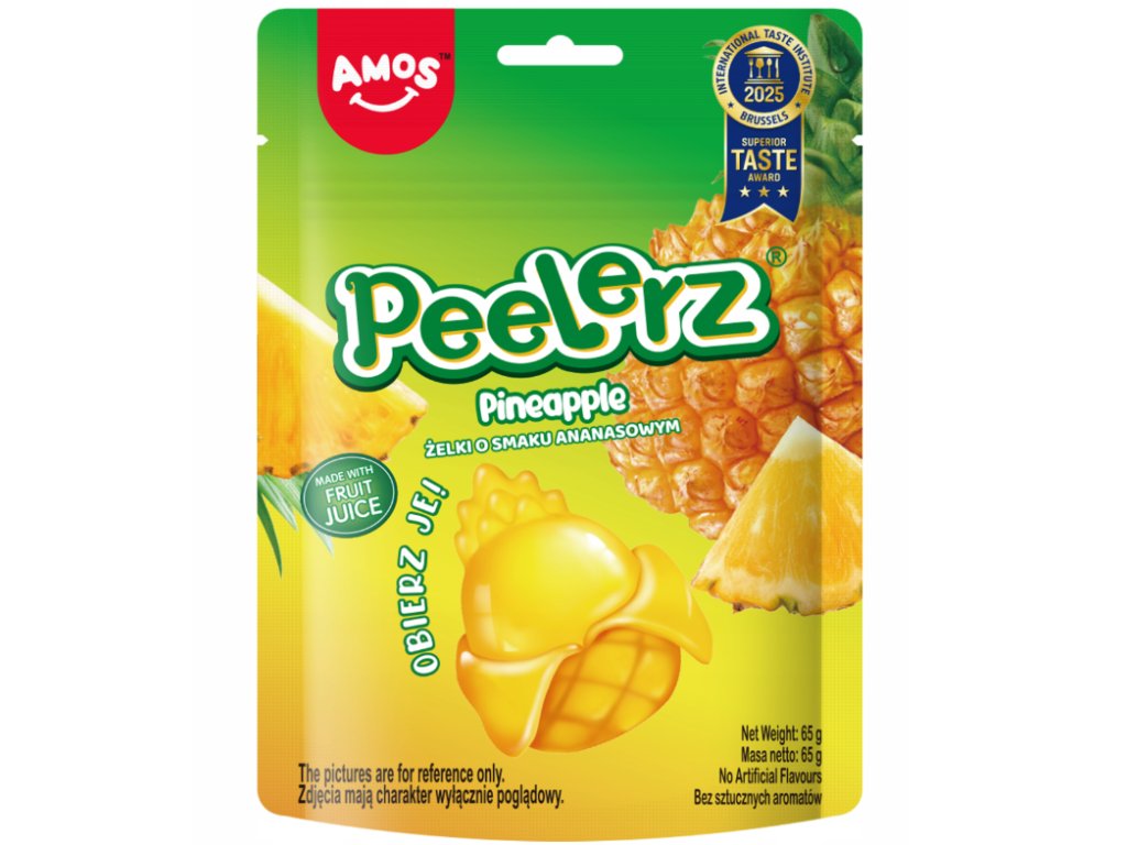Amos Peelerz Pineapple – želé bonbóny ve tvaru ananasu s jedlou „slupkou“, připravené z ovocných šťáv