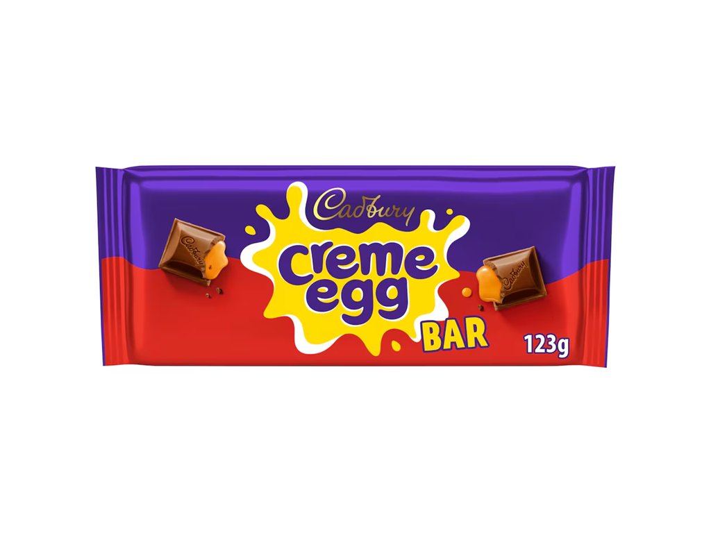 Cadbury Creme Egg Bar je samá náplň, žádné vejce. Lahodná mléčná čokoláda se stejnou měkkou náplní jako Creme Egg. Vyrobeno ze 100% udržitelně získávaného kakaa a vhodné pro vegetariány.