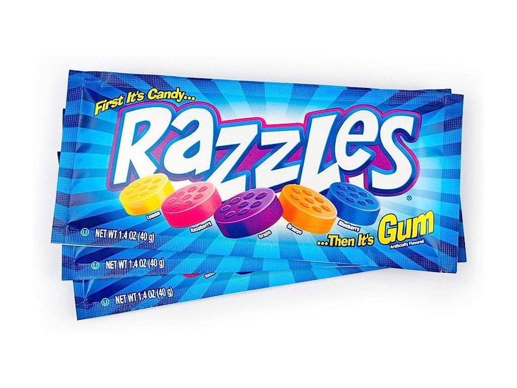 Chutné sladké ovocné bonbonky, které se později mění na žvýkačku